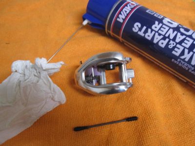 リールはグリスやオイルを使っているので隅々まで掃除して油分を完璧に落とします。