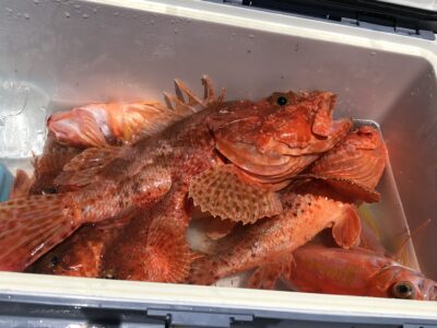 先週みたいにカサゴはたくさん混じらないけどいい感じでオニカサゴが釣れる。