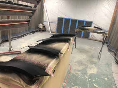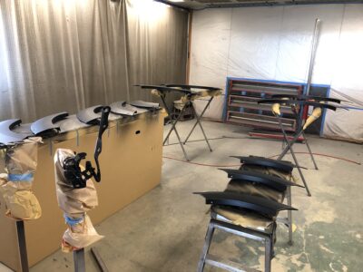 最近はこのような作業がずっと続く。デリカのパーツの塗装。