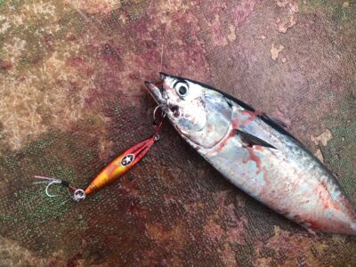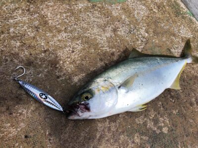 朝一シマアジのポイントでシマアジやる前に軽くジグを投げてみた。