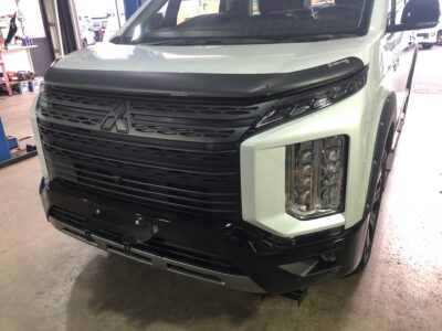 この車両は元々グリル、アイライン、フォグカバーは艶ありの黒。