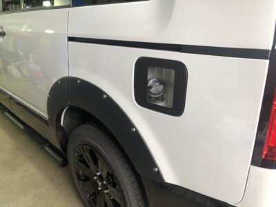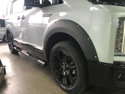 サイドステップに社外オーバーフェンダーの取り付け。