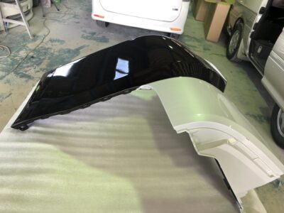 リアのバンパーは下は黒、上はパールっていう部品が新品では設定ないので今回の車両の下半分を黒に塗装。