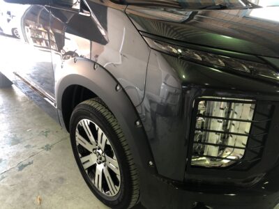 そしてボクは現場で社外のオーバーフェンダーの取り付けとサイドステップの取り付け。